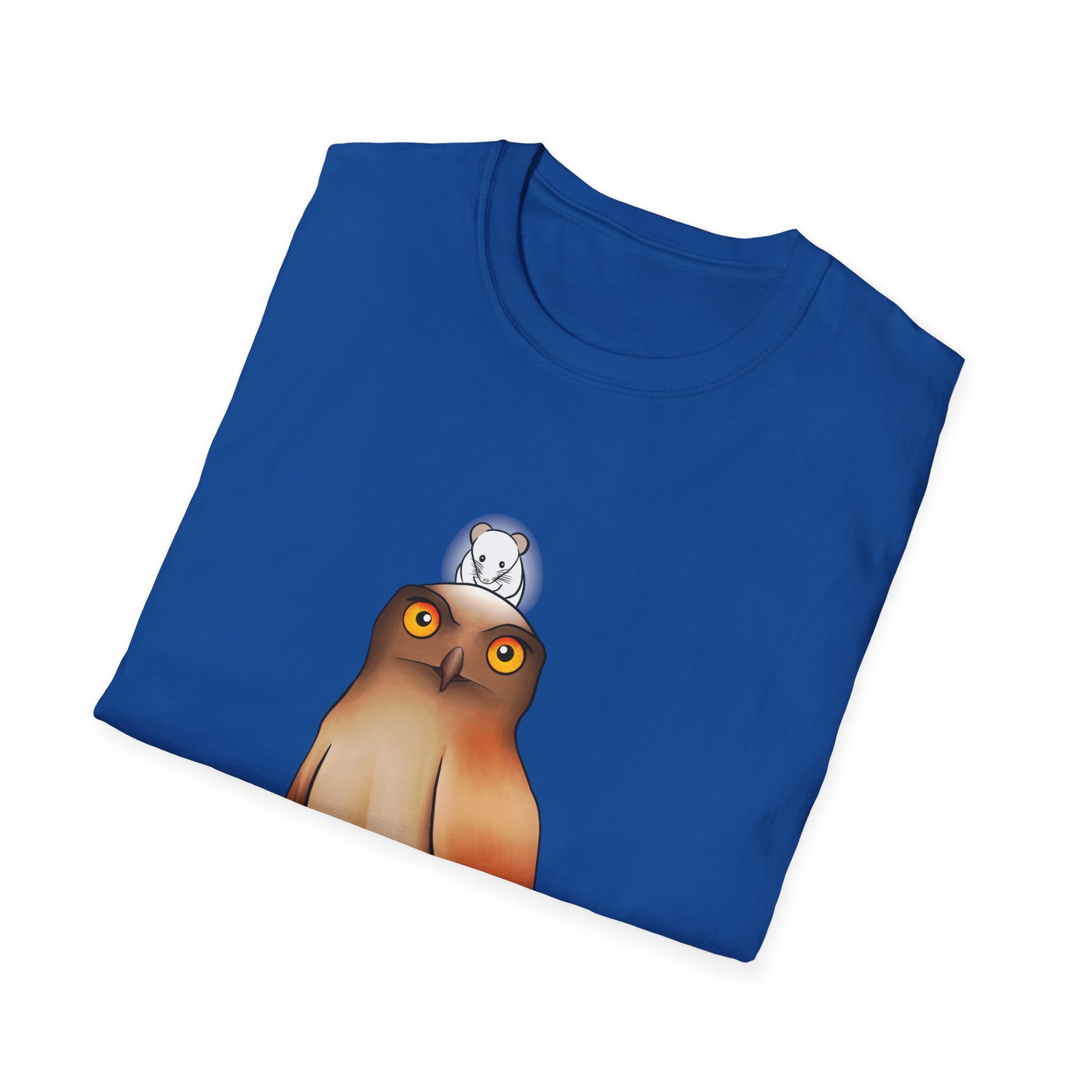 Owl T-Shirt with award-winning “Eyes of Wisdom” artwork. Nature lover, funny, statement piece shirt.