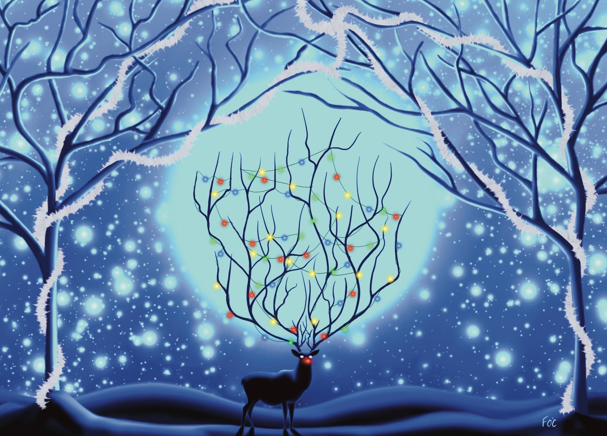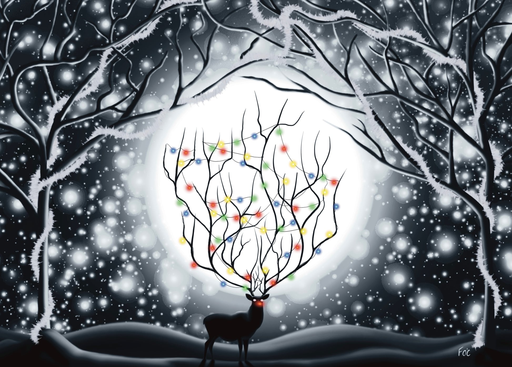Bring a dash of elegance and wonder to Christmas this year with original artwork Solitary Observer all done up for Christmas!